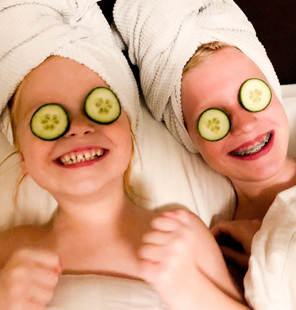 Gelukkig komt vriendlief de hal in. Terwijl ik naar de Pilates fiets, koelt hij haar gezicht met komkommerschijfjes.